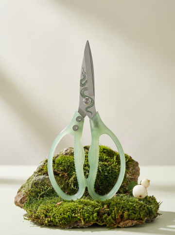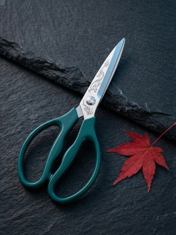 六把不同造型的剪刀系列素材集合,每把剪刀保持金属刀刃的光泽质感与黑色塑料手柄的材质对比,分别呈现完全不同的开启角度、手柄弧度和刀刃形状,以规整的网格排布于纯色背景上,整体采用统一的写实摄影风格,光线从左上方45度角照射形成自然阴影,色彩变换为清新的蓝绿色调,画面简洁无文字信息,突出剪刀的功能性设计美感与系列化视觉统一性。