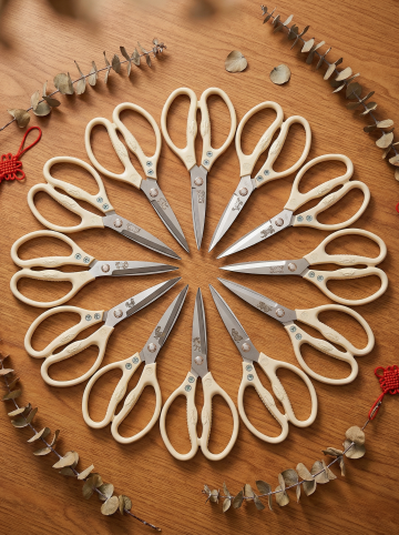一套6个不同造型的剪刀系列图标,每个剪刀保持3D立体风格、光滑塑料与金属质感、精确阴影与高光表现,采用纯色背景(每个图标可使用不同但和谐的纯色背景),剪刀造型包括:1.经典对称圆柄剪刀,2.弯嘴剪刀,3.锯齿刃剪刀,4.儿童安全圆头剪刀,5.长条形剪纸剪刀,6.流线型工业剪刀。所有剪刀以规整网格布局排列,保持统一的光照角度和视觉重量感,金属刀刃部分呈现银色反光质感,手柄部分可根据剪刀类型采用不同颜色但保持整体设计协调。