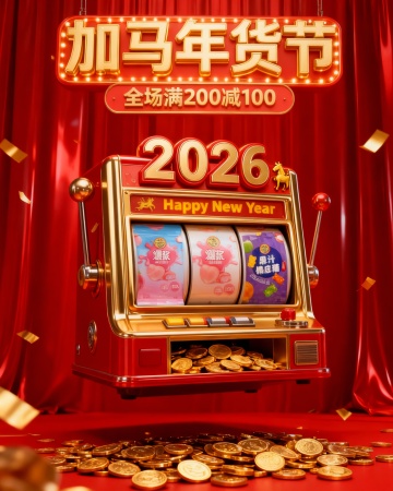 春节年货节美容美妆创意老虎机商品玩法海报