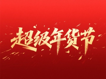 国潮风水彩大字,鎏金质感搭配红绳灯笼与鞭炮,喜庆中式年货节氛围浓厚,视觉冲击力强。