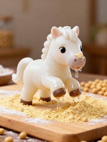软3D风粘土质感小马,流淌蜂蜜与面粉,萌趣可爱,温馨甜蜜,充满童趣与节日氛围。