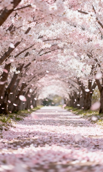 从下往上仰拍的视角,茂密的樱花树森林,阳光透过粉白色的樱花花瓣缝隙洒落,形成斑驳的光影效果,天空呈现出明亮的蓝色,枝干粗壮挺拔,整体画面充满生机与宁静的氛围,高清晰度,写实风格,色彩鲜艳且和谐。