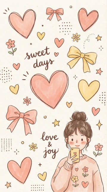 可爱卡通风格的粉色系背景,整体采用浅粉色格子图案,营造出温馨甜美的氛围。画面中央是一个猫耳朵形状的白色边框,边框内有两只可爱的卡通小猫:上方是一只戴着粉色蝴蝶结、脸颊泛红的小猫,下方是一只抱着粉色爱心、同样脸颊泛红的小猫。周围点缀着黄色星星、彩色字母“CUTE”、粉色爪印和小爱心等装饰元素,整体构图充满童趣和可爱感,线条圆润柔和,色彩明快和谐,充满欢乐愉悦的情感。