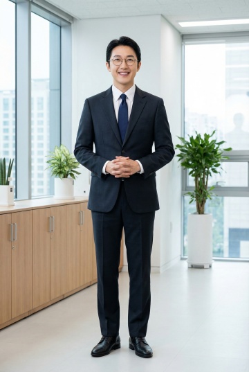 商务感十足的性冷淡风肖像,简约主义构图,实景质感呈现,印刷风色调统一,凸显专业与沉稳。
