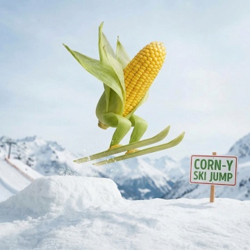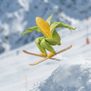 清透水珠滴落玉米,光影交错间尽显液态风与实景感,水彩般柔和的绿意背景,营造出清新唯美的自然意境。