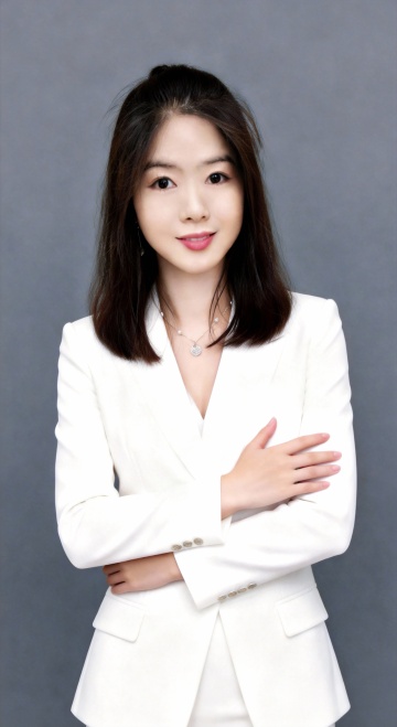 我想换成蓝色的西装,最好是现代化职业女性的感觉,参考韩式肖像照