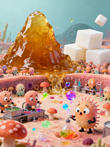 未来感与科技感交织,3D重拟物风格呈现宇宙级粥品星球,粒子环绕、金属质感勺子托起红枣,梦幻而富有体积感的视觉奇观。