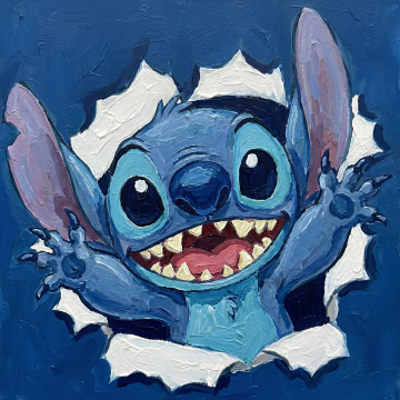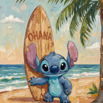 史迪奇在海浪中冲浪,可爱清新,充满夏日欢乐氛围。
