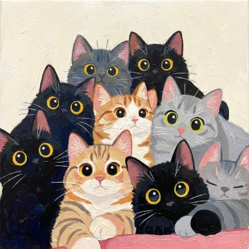 抽象表现主义风格的炫彩背景,以明亮的粉色、黄色和紫色为主色调,融合蓝色和橙色的点缀,呈现出丰富的色彩和谐。画面充满动感的大笔触肌理,厚重的颜料堆积感,以及飞溅的大小不一的彩色墨点和泼溅效果。色彩过渡自然且富有层次感,光影柔和,高光与阴影形成微妙对比,整体营造出欢快、奔放且充满活力的艺术氛围。背景纹理细腻,带有帆布质感,笔触方向多变,既有横向的长线条,也有不规则的块状涂抹,色彩交织融合,形成视觉上的动态平衡和强烈的视觉冲击力。