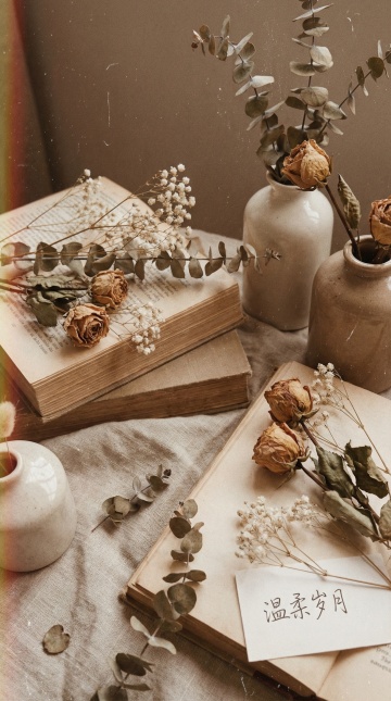 自然光摄影风格,柔和明亮的光线从侧上方洒入,在浅米色墙壁上形成清晰的光影条纹,温暖的木质桌面占据画面下方三分之一,桌面上摆放着不同的家居摆设,如插有干花的陶瓷花瓶、叠放的布艺靠垫和一本翻开的装饰画册,背景中是重新布置的白色开放式置物架,架上陈列着造型简约的玻璃罐、藤编收纳篮和绿植盆栽,整体色调采用原木色、浅灰色与淡蓝色的和谐搭配,营造出清新自然、整洁有序的现代简约家居氛围,焦点清晰,背景适当虚化,画面质感细腻,具有良好的空间层次感和舒适的居家温馨感。