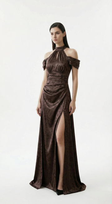 国潮风刺绣礼服,工笔花鸟纹饰,鎏金边饰点缀,古典优雅中透出奢华民族感,尽显东方美学之韵。
