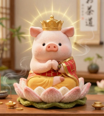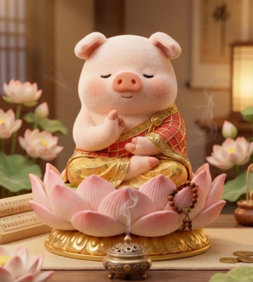 软3D风格的拟人小猪,毛发生长质感细腻,手持购物袋与卡片,置身粉色梦幻场景,充满甜美与可爱感,节日氛围浓厚。