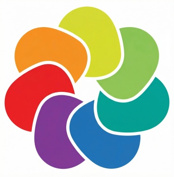 白色背景上,一团充满动感的抽象色彩飞溅图案,主要由明亮的黄色、橙色、粉色、蓝绿色和深紫色等鲜艳色彩构成,色彩间有自然的交融过渡,边缘呈现出不规则的、富有张力的笔触效果,整体形态如同颜料被快速挥洒而成,具有液态金属的光滑质感和强烈的光泽感,色彩饱和且富有层次,光影效果突出,给人一种活力四射、流动飘逸的视觉感受。