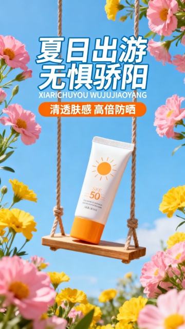 清爽感与清透感交织,光影流动间展现肌肤自然光泽。大字风搭配杂志风排版,液态风泡泡元素点缀,玻璃质感强化科技感,传递夏日防晒的时尚潮流美学。