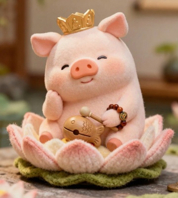 软3D风格的卡通小马,身披国潮刺绣红袍,毛发生长细腻,喜庆可爱,融合传统云纹与节日氛围,萌趣十足。