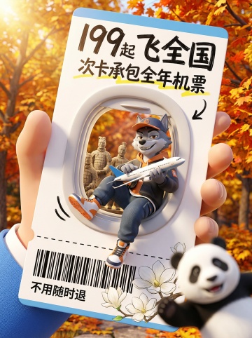 卡通感十足的3D拟人形象,融合国潮元素与微缩艺术风,展现趣味旅行场景,清新秋日背景搭配体积感设计,传递节日出行的轻松愉悦。