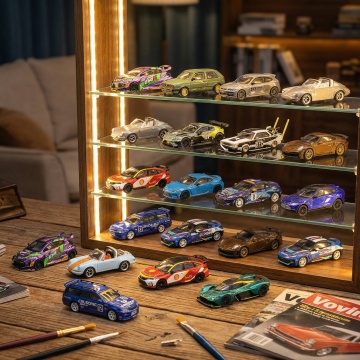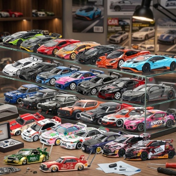 纯色背景上,六个完全不同材质和类型的交通工具元素规整排布组成系列素材集合。包括:1. 橙色哑光塑料材质的卡通小轿车,圆润车身,白色车窗和轮毂;2. 金属质感的红色双层公交车,表面有光泽,黑色车窗和车轮;3. 木质纹理的复古摩托车,棕色车身,黑色座椅和轮胎;4. 透明玻璃材质的概念跑车,流线型车身,内部结构隐约可见;5. 毛绒材质的粉色微型汽车,柔软质感,白色车顶和车轮;6. 石材雕刻的越野车,灰色岩石纹理,粗犷的车身线条和大尺寸轮胎。所有元素保持简洁的卡通风格,造型各异,色彩鲜明,在白色背景上整齐排列。