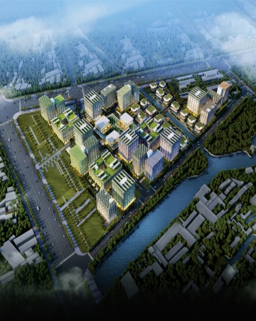 现代感与科技感交织的商务建筑,3D风实景渲染,玻璃与金属材质碰撞,光影流动,静谧夜空下星月辉映,简约主义设计尽显高端气质。