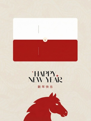 国潮风插画,红马奔腾,鎏金祥云与灯笼点缀,剪纸元素融合中式纹样,喜庆吉祥,尽显民族韵味。