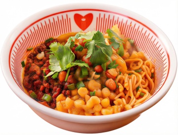 顶视角度,一碗黑色的碗里装着飘香的牛肉面,面条根根分明,汤色浓郁,上面撒着鲜红的辣椒和翠绿的葱花,热气腾腾,散发着诱人的香气,画面清晰,色彩鲜艳,细节丰富
