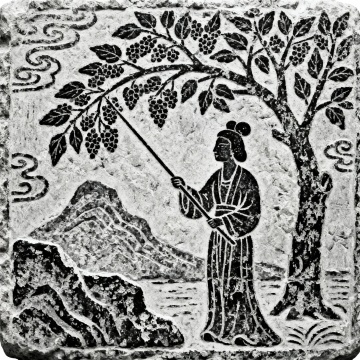 摹仿汉画像中的采桑图,石刻风格
