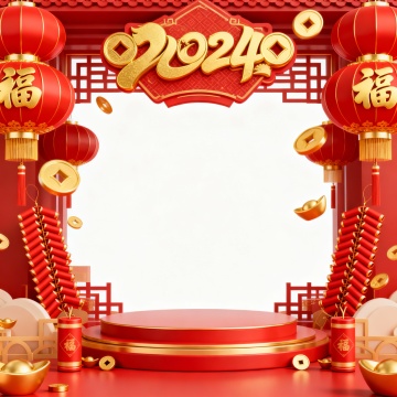 中式复古风海报,红金配色尽显喜庆与奢华,重拟物浮雕马踏祥云,搭配灯笼与中国结,国潮金属质感浓厚,节日氛围浓郁。