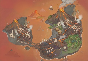 清新卡通插画风,沙滩椰树与破船相映,海鸥飞翔,夏日海岛冒险氛围。