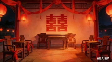 数码厚涂风格东方建筑群夜景图。画面以红色满月为背景,中心多层宝塔与古朴建筑群错落分布,淡紫粉色樱花树环绕其间,木质平台散落花瓣,灯笼与孔明灯点缀夜空,色彩过渡自然且富有层次感。