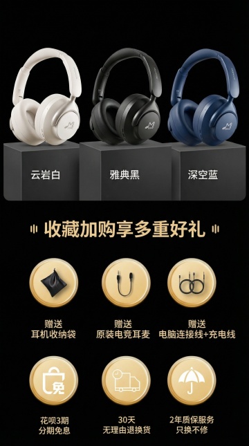 一副白色的头戴式无线蓝牙耳机,采用现代简约的设计风格,机身线条流畅圆润,头梁和耳罩外侧为光滑的白色哑光塑料材质,耳罩内侧是黑色的柔软透气记忆海绵,表面覆盖细腻的黑色织物,头梁内侧有黑色的皮质软垫。耳机以45度角略微倾斜的角度悬浮在浅色(接近白色)的纯净背景上,光线从左上方柔和照射,在耳机右侧和下方形成淡淡的灰色阴影,突出耳机的立体轮廓和材质质感,整体呈现出专业、高端、科技感的产品展示氛围。