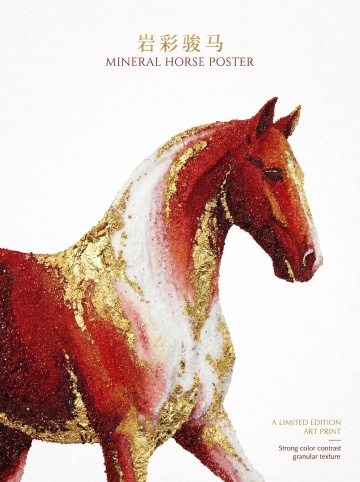 岩彩骏马,以矿物颜料与鎏金箔营造奢华质感,融合工笔细腻笔触与重拟物造型,展现东方美学的唯美感与文艺气息,立体主义构图赋予画面深邃层次。
