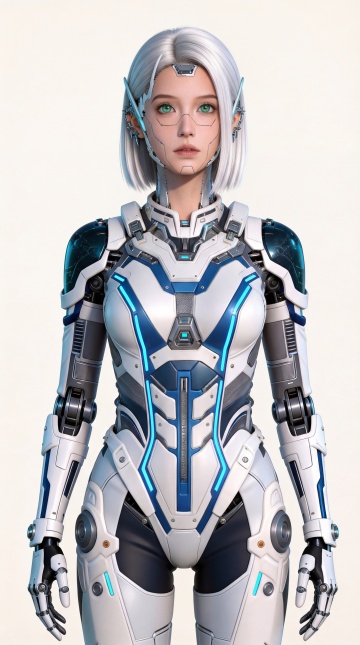赛博朋克风3D角色,未来感金属质感,霓虹灯映衬下的科技夜景。