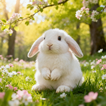 软3D风格的可爱小兔,毛发生长细腻自然,插画风与水彩质感融合,清新柔和的春日氛围,梦幻感十足,适合春季节日主题。