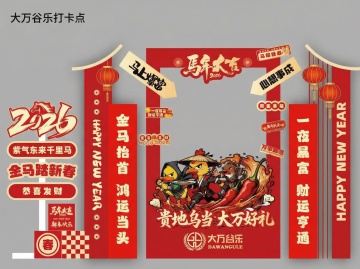 软3D风格萌马拟人,身着国潮红衣提灯笼,踩祥云欢庆2026马年大吉,喜庆卡通感十足。