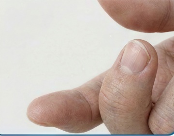 一张高度写实风格的摄影作品,画面主体为一只男性的手,正做出清晰的食指指向前方的手势,手指关节和肌肉线条分明,皮肤纹理、指纹细节及指甲的自然光泽都得到精确呈现,手部位于画面中央偏下位置,背景为纯白色,光线从斜上方均匀照射,在手部边缘形成柔和的阴影,整体构图简洁有力,视觉焦点高度集中于手势本身,传达出明确的指示性和引导性,无任何文字、LOGO、二维码或多余装饰元素,画面干净利落,信息传达直接高效。