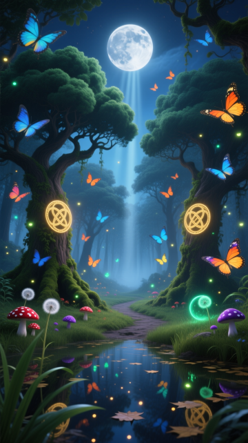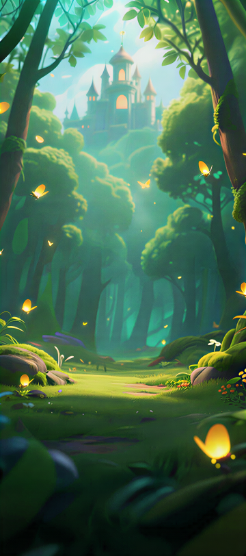梦幻插画风,虚拟自然景象,荧光植物点缀,营造神秘森林氛围。