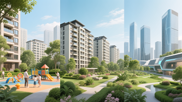 现代化办公空间背景,采用高清3D渲染技术,呈现出与原图一致的超写实风格,以通透的蓝色系为主色调,搭配白色和浅灰色作为中性色,营造明亮、专业、科技感的氛围。场景中包含玻璃幕墙的高层写字楼外观,建筑线条流畅锐利,表面有细腻的金属质感和反光效果,如同原图中高耸的摩天大楼。光线从侧上方照射,形成清晰的光影对比,天空呈现渐变的蔚蓝色,点缀着少量白色云朵,增强空间的开阔感。办公区域可设置开放式工位、简约的会议桌、舒适的沙发座椅,地面采用浅色木地板或大理石材质,墙面装饰简约的艺术画作或绿植,整体布局遵循对称美学和视觉引导线,确保画面层次分明,符合现代办公环境的高效与专业特质,同时保持与原图在光影、色彩和谐度及3D质感上的高度统一。