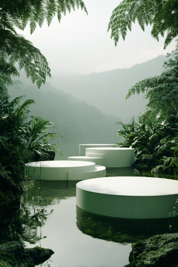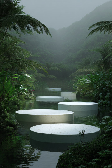 软3D风格插画,多组石制台阶与绿植组合,石阶呈现浅灰色调,表面有自然纹理和细微凹凸感,边缘圆润柔和,台阶缝隙及两侧生长着茂密的绿色植物,叶片层次丰富,色彩从嫩绿到深绿渐变,整体光影柔和,光线均匀,营造出清新自然、宁静舒适的氛围,画面构图均衡,各元素分布错落有致,线条流畅,具有手绘般的细腻质感和柔和过渡效果。