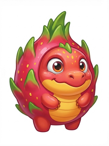 软3D风格的火龙果小怪兽,拟人化设计融合卡通与厚涂技法,萌趣十足,传递甜蜜可爱感,适合节日插画应用。