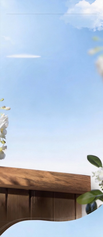 水彩风插画,轻拟物设计,蓝白花影映天光,朦胧清透,梦幻优雅,文艺气息弥漫。