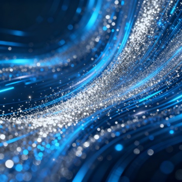 抽象线条艺术风格的自然风光画作,以流动感十足的蓝色系为主色调,从深邃的藏蓝渐变为明亮的冰蓝,点缀着银白色的闪光颗粒,营造出宁静而富有动感的氛围。画面中,优雅起伏的曲线和交错的细长线条模拟了海浪或气流的自然运动轨迹,整体构图呈现出一种不对称的平衡美感。改变画面纹理为细腻的磨砂质感,同时保留线条的锐利边缘和色彩的渐变过渡,使抽象的自然元素更具触摸般的真实感,达到视觉上的和谐统一与独特的艺术表现力。