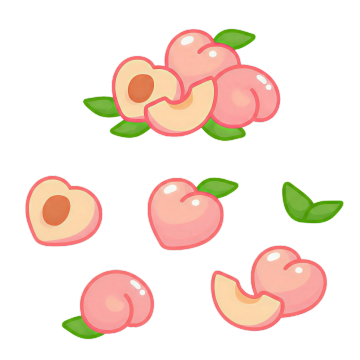 6个不同样式的桃子造型,上下两行对齐排列,每个桃子都具有高度写实的质感,表面有自然的红晕和细腻的绒毛,浅色背景,桃子颜色从粉嫩的浅粉色到橙红色渐变,带有清晰的纹理和光泽感,部分桃子带有翠绿的叶子,叶子有明显的叶脉和自然的弯曲形态,整体构图简洁明快,突出桃子的新鲜和饱满,光影效果柔和,立体感强,细节丰富,色彩和谐统一。