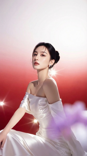 中式复古风,红金刺绣旗袍搭配鎏金马具,手持灯笼,尽显国潮奢华与优雅喜庆之美。