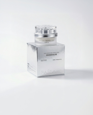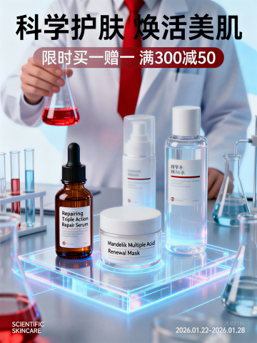 一张年轻女性手持护肤品、渐变紫色背景的美妆广告风格图片