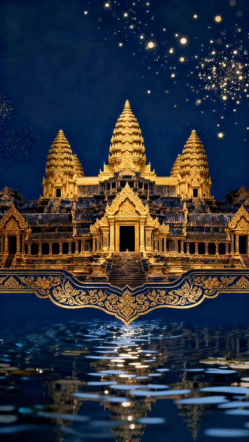 国潮风夜景,中式建筑与霓虹灯笼交织,浮雕屋檐在光影中熠熠生辉,实景感十足,洋溢喜庆民族氛围。