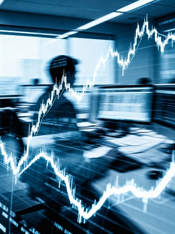 1张金融主题的图片,蓝色系,3d渲染,高质量,互联网风格,横版