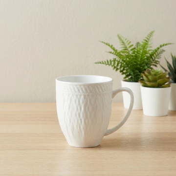 六个不同样式、不同风格、不同配色的陶瓷杯子,每个杯子都具有光滑细腻的釉面质感,如原图中红色杯子般的圆润杯身轮廓和简洁手柄设计,杯子排列整齐呈规则队形,置于纯白色背景上,整体呈现出高清晰度、明亮柔和的光线效果,无阴影干扰,突出每个杯子的独特造型与色彩特点,设计风格简约现代,信息传达清晰直观。