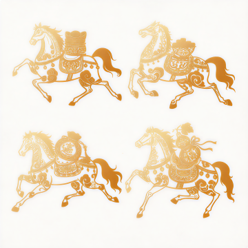鎏金剪纸风骏马踏云,古典中式意境交融梦幻与优雅,奢华质感中透出唯美的东方神韵。