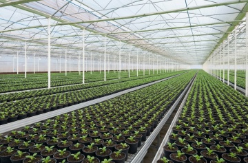 动漫风格工厂内部全景图,明亮的厂房空间,整齐排列的现代化白色工业设备,地面光洁反射灯光,穿着白色工作服的技术人员在设备间操作走动,金属质感的机械细节,天花板上密集的白色照明灯,整体呈现干净整洁的科技感生产氛围,线条清晰,色彩明快,略带卡通化的写实风格,无文字信息。