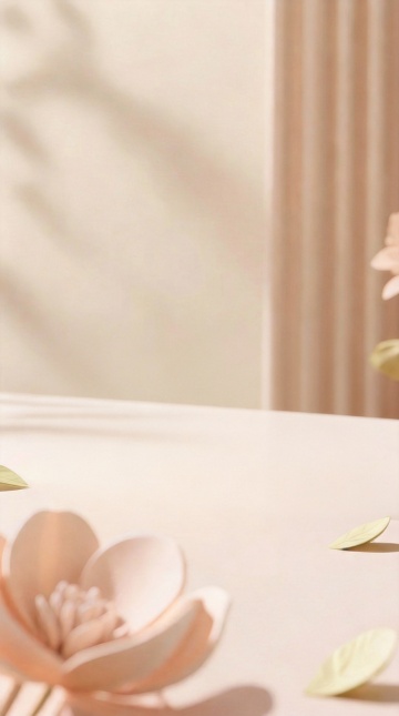 以粉紫色为主色调,柔和渐变的背景,点缀着粉色的花朵和绿色的叶子等自然植物元素,整体画面呈现出朦胧、梦幻的氛围,采用水彩晕染的纹理材质,色彩过渡自然柔和,营造出清新浪漫的感觉。