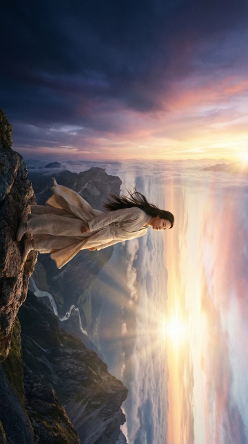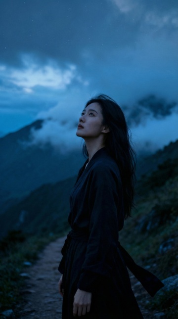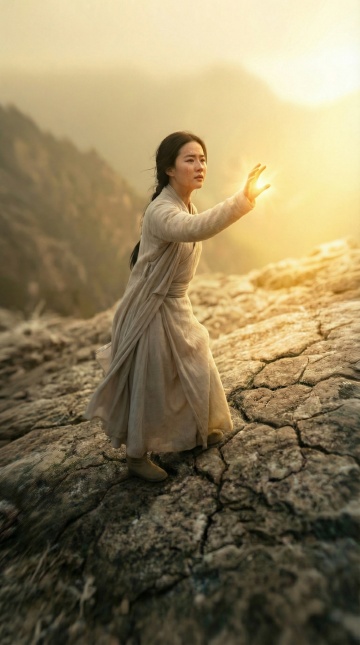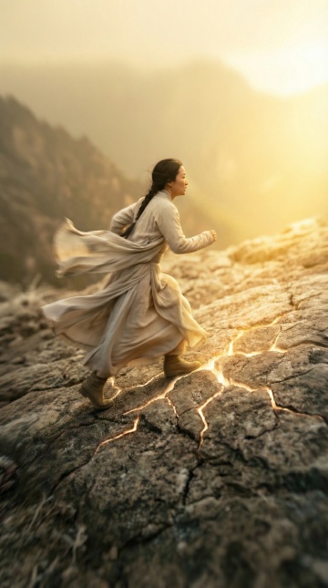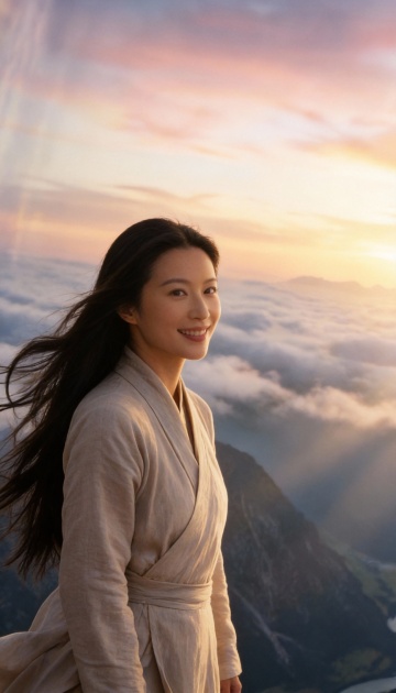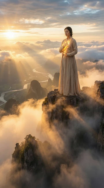 暮色花海中,女子身着刺绣旗袍,静立远眺。光影交织,水墨意境与油画质感交融,中式美学在浪漫夕阳下流淌,唯美感与静谧感并存。